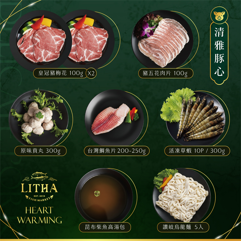 🌸 清雅豚心組: 特選柔嫩豬肉,肉質細膩清雅。