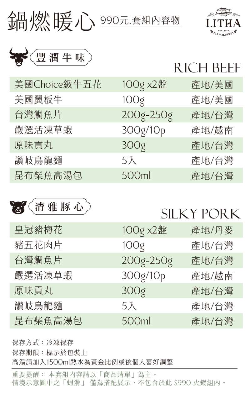 現在牛組或豬組任選一,限時暖暖價只要 $990 元!