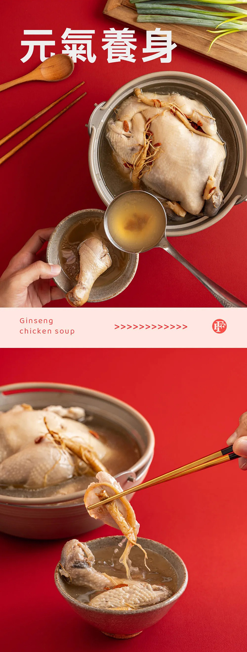▸ 嚴選整隻土雞 + 人蔘滋補,補氣養身