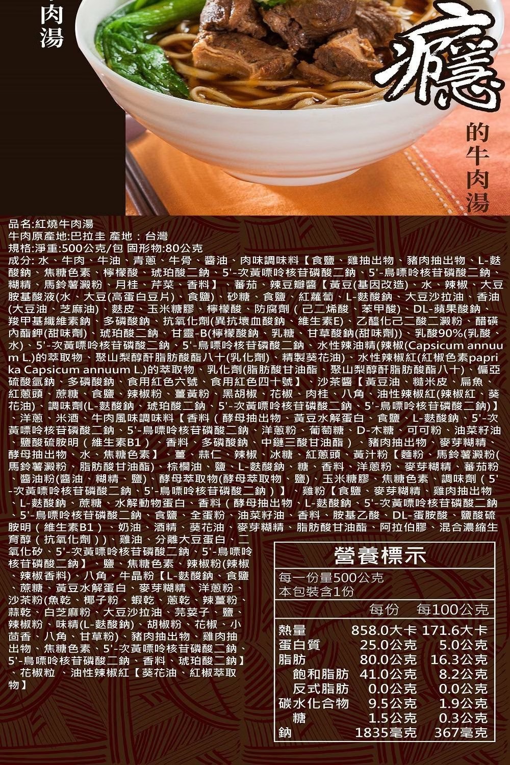 ▸ 經典台式紅燒風味,湯頭以牛大骨慢火熬煮
