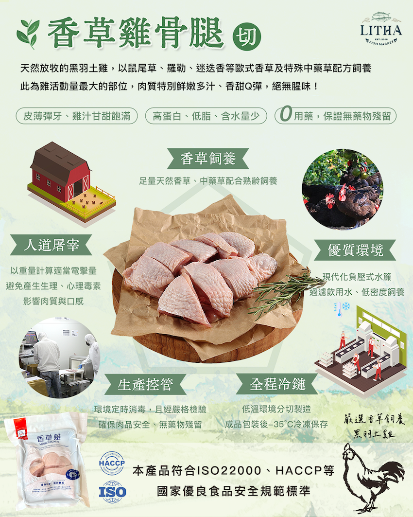 ▸ 嚴選香草飼養黑羽土雞,風味自然香甜