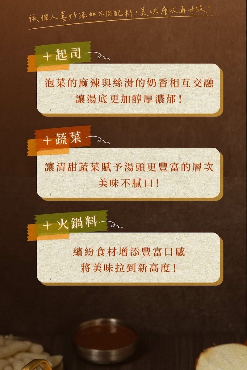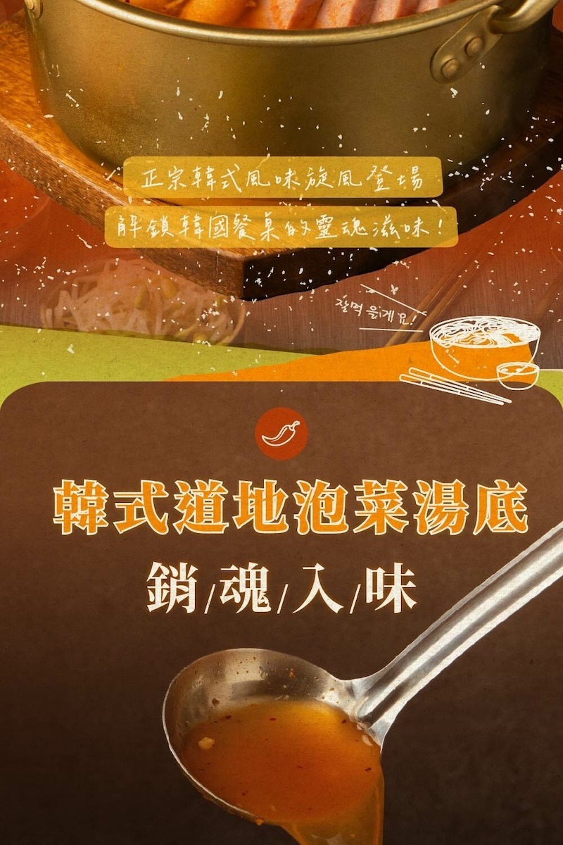 ▸ 道地韓國泡菜與辣椒醬熬製湯底,酸辣開胃、香濃濃郁層次分明