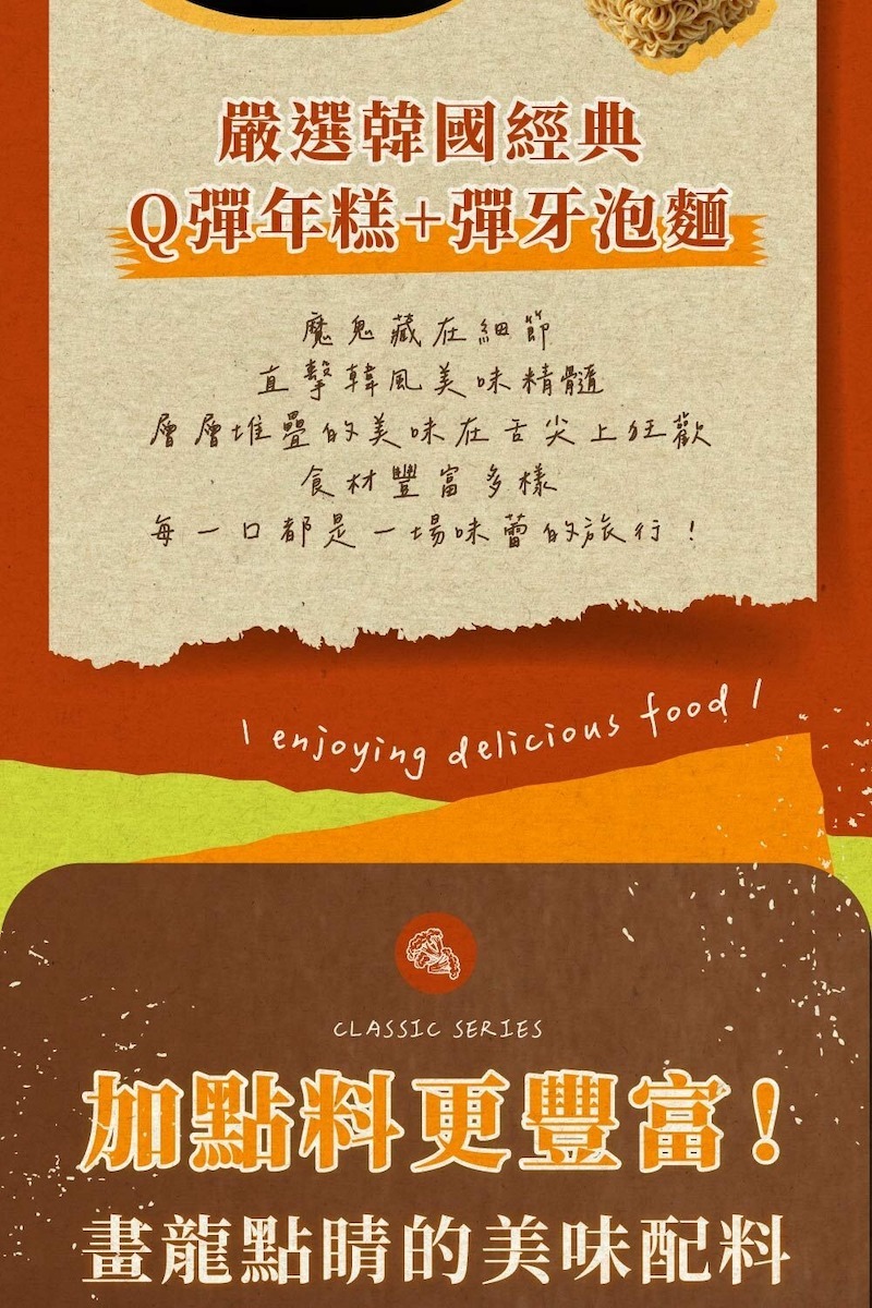 ▸ 內含經典韓式年糕+彈牙泡麵,Q彈滑順、吸附湯汁入味過癮