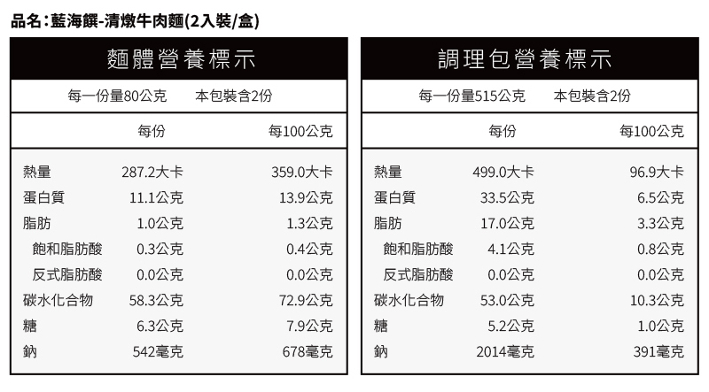 ▸品名:藍海饌 清燉牛肉麵 2入裝