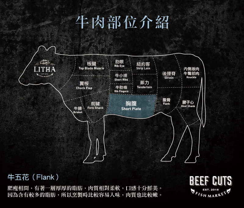 ▸ 精選牛隻胸腹部位切製,又稱 雪花牛、小肥牛